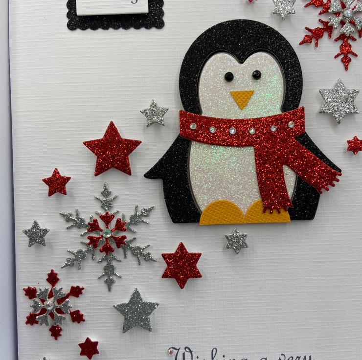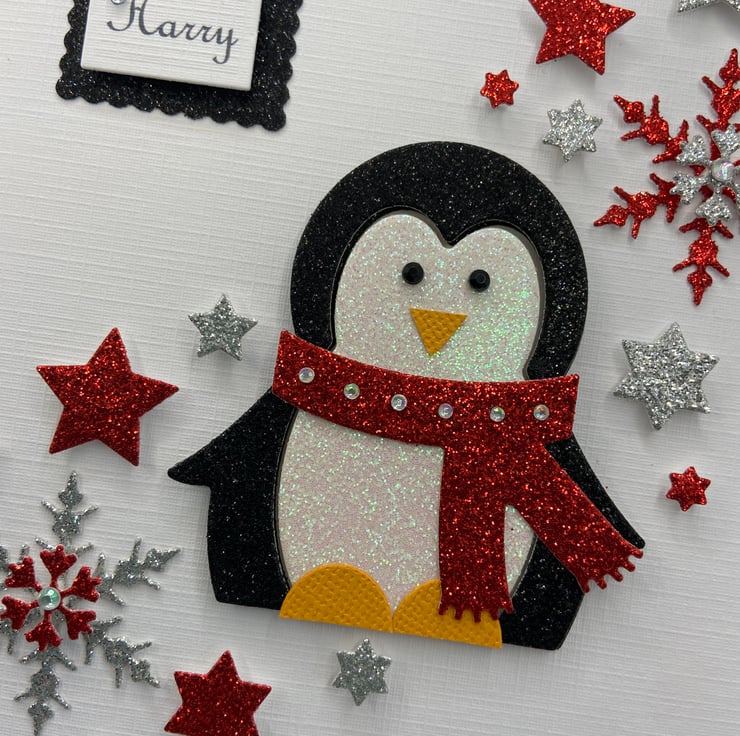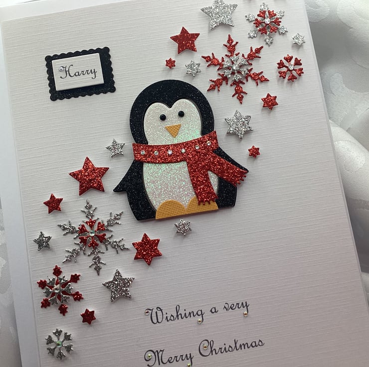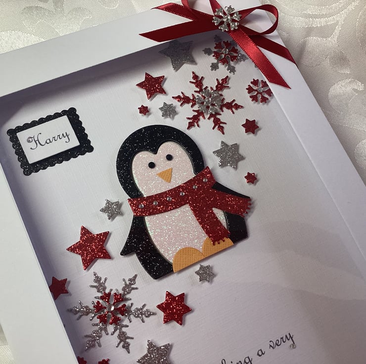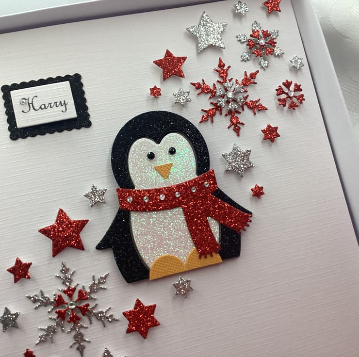 This handmade personalised Christmas card is A5 in size ( 210mm x 150mm) and is on 300gsm heavyweight linen card. The text on the card can be personalised for you.