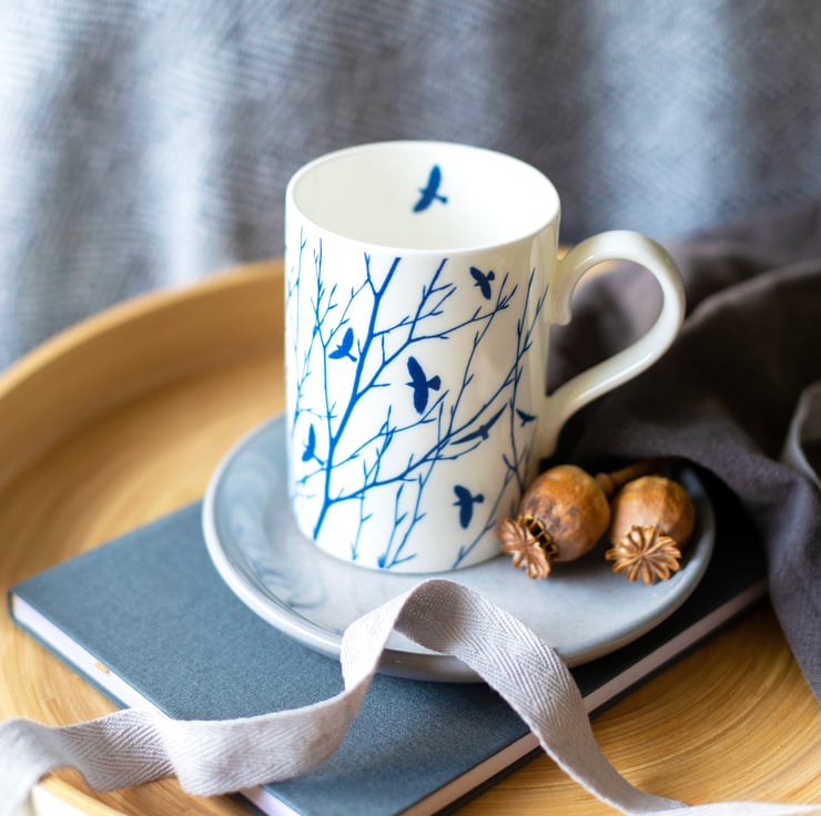 A special offer for any 3 of 'The Way to Blue' new large fine bone china mug designs for £45. Usually £15.95 each.