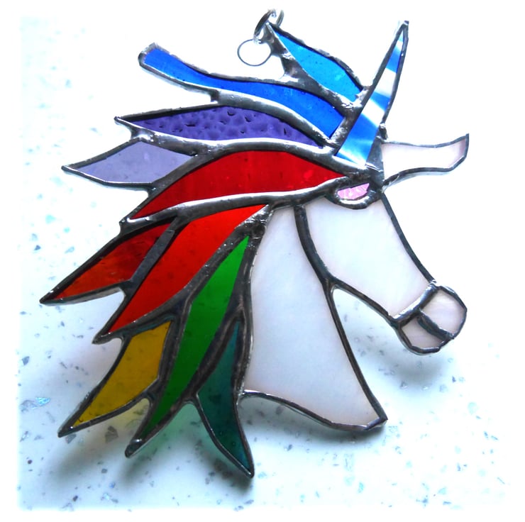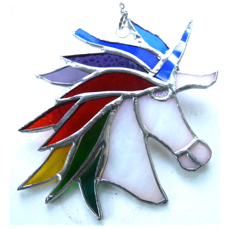 A bright and beautiful piece which will enhance any window and cast its colours across the room when the sun shines through.