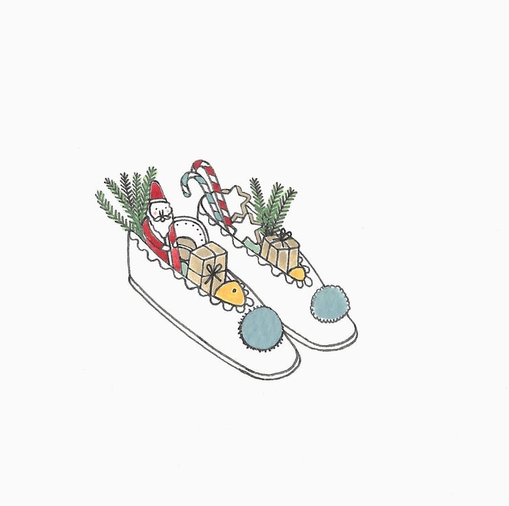 The Christmas tradition of placing treats in shoes for St Nicholas Day.