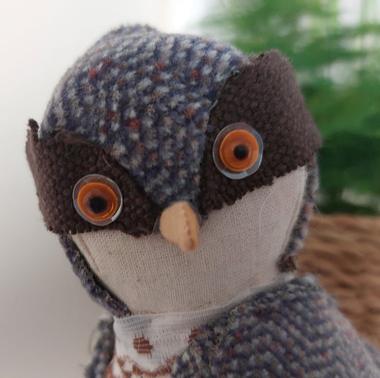 Quirky Hawk-like soft sculpture hand crafted from fabric remnants. Free standing. Approx 17cm height