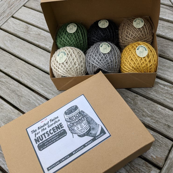 Nutscene twines are produced from sustainable crops, with full traceability. They are ethically produced and wound in their factory in Angus, UK. They are biodegradable and very strong.