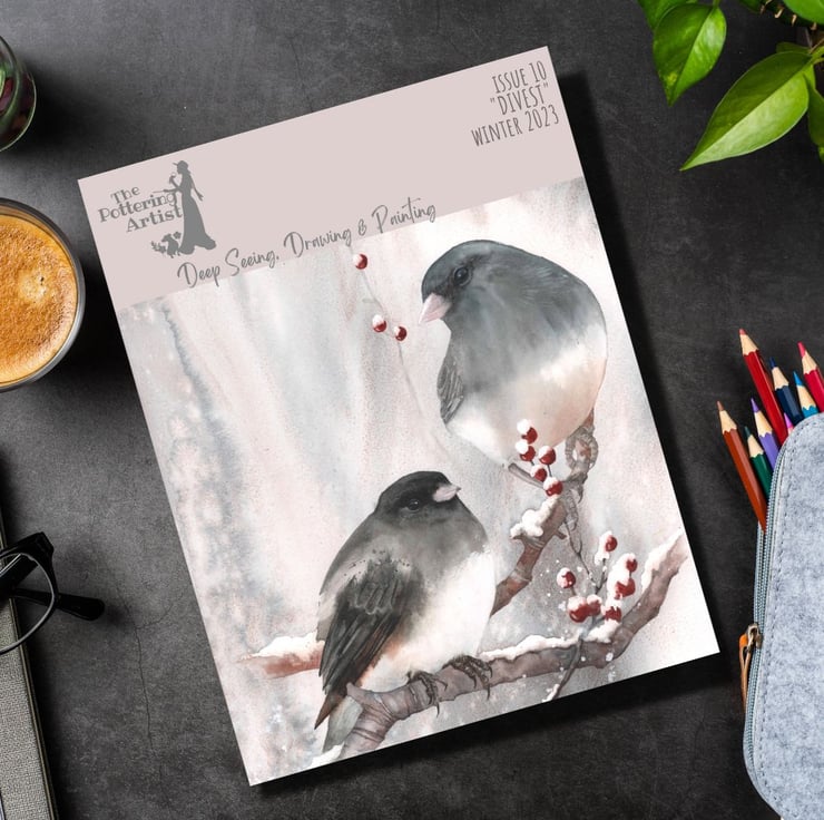 Sink into the artistic solace of Issue 10 WINTER 2022 "DIVEST " The Pottering Artist Magazine - shipped to your door!