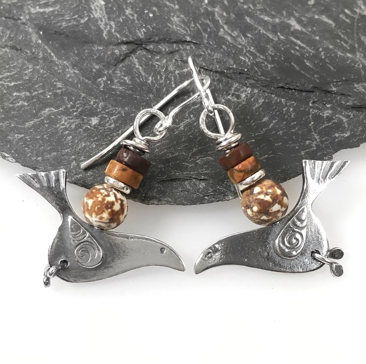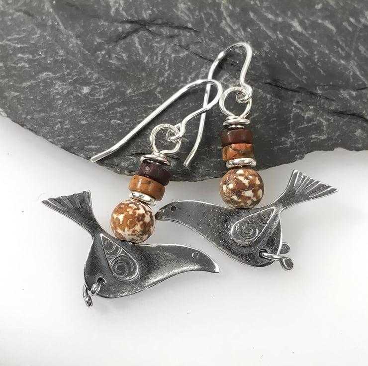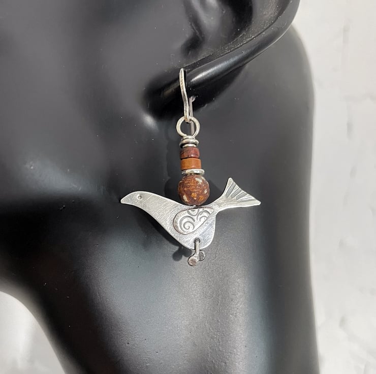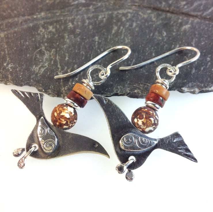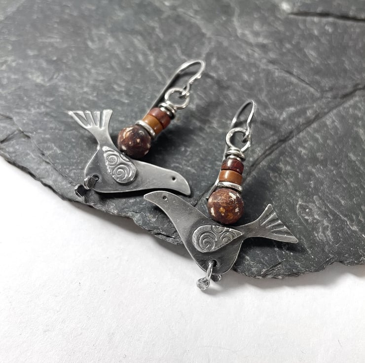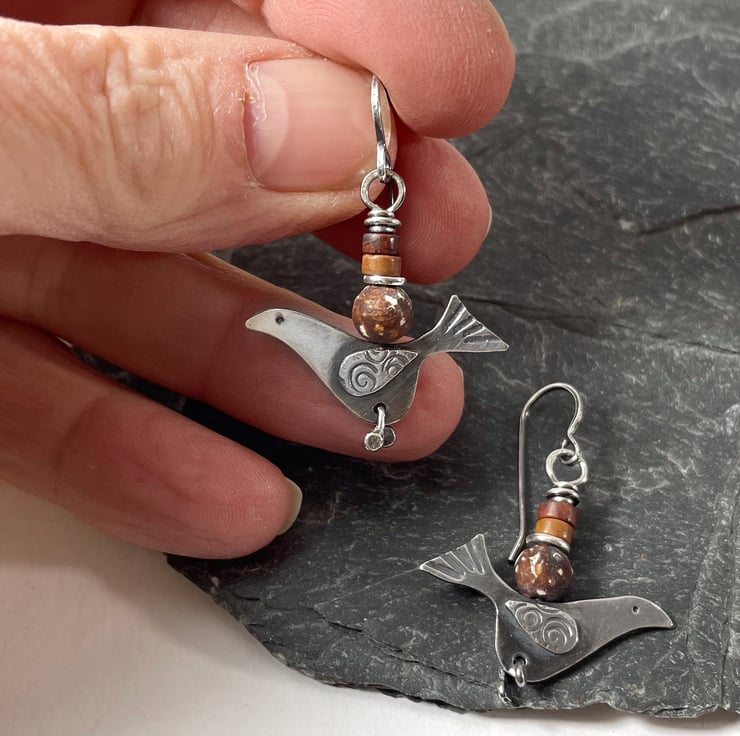 I have made some small silver birds with swirly wings and moving legs. The silver has been oxidised dark in the recesses .