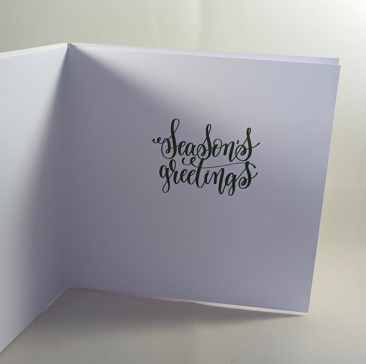 The card measures approximately 12.5cm (5 inches) square and comes in a cellophane wrapper, together with a white envelope.