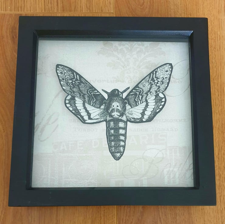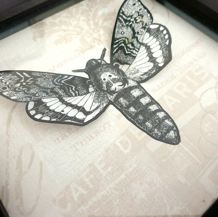 This exquisite 3D vintage moth art has wings outstretched, resting on a vintage style background.