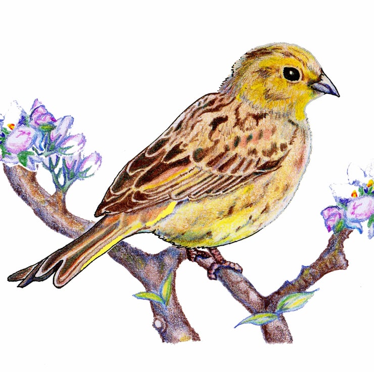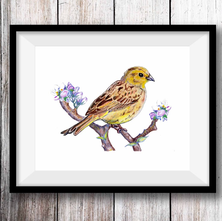 Bring a warm and restful touch of nature indoors with this beautiful A5 print. It features a handdrawn Yellowhammer taken from my original artwork in pencil.