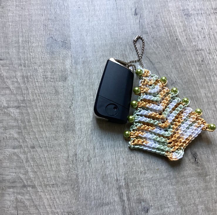 Crochet large keyring, Christmas tree, beaded keyring.