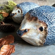 After a biscuit firing, the Robins are much harder and can safely have layers of dark stoneware glazes and a bright red under glaze applied before receiving a final firing to a high temperature making the bird sculptures frost proof so suitable for outdoors.