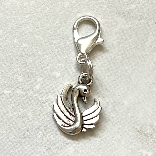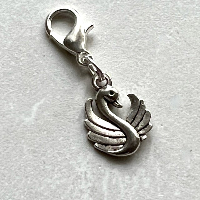 Swan charms, clip on charm, zipper pull, purse, planner or stitch marker charm