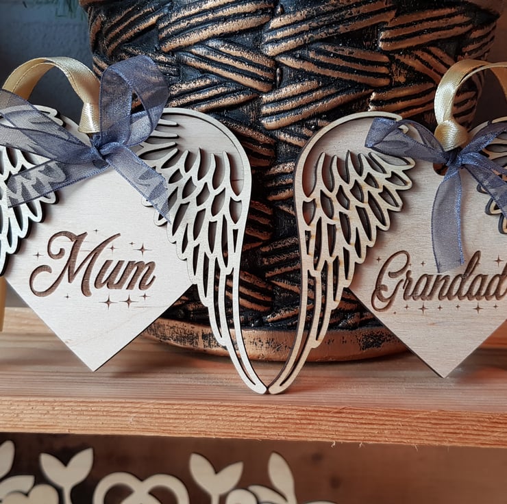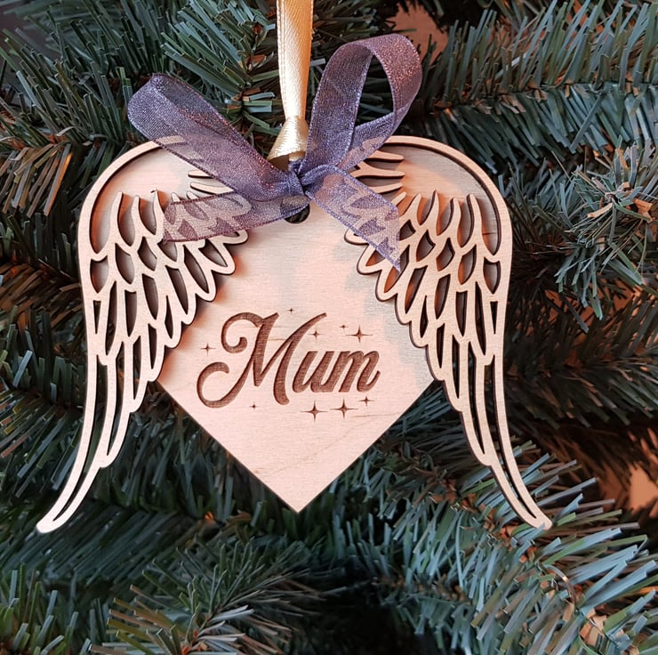 This lovely angel wings wooden christmas tree decoration can be personalised with a name to remember that loved one over the festive period