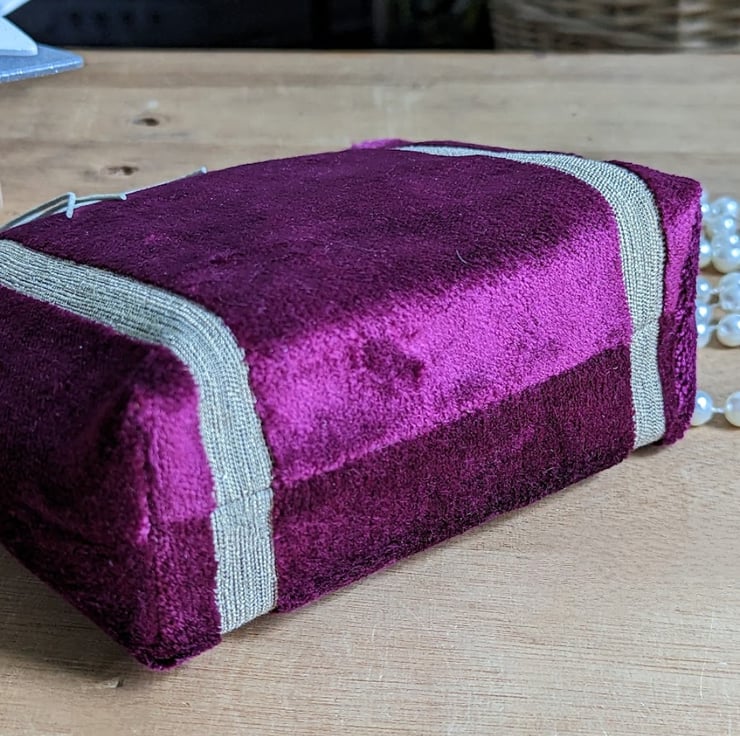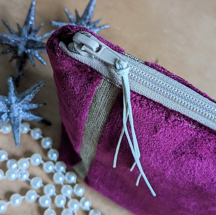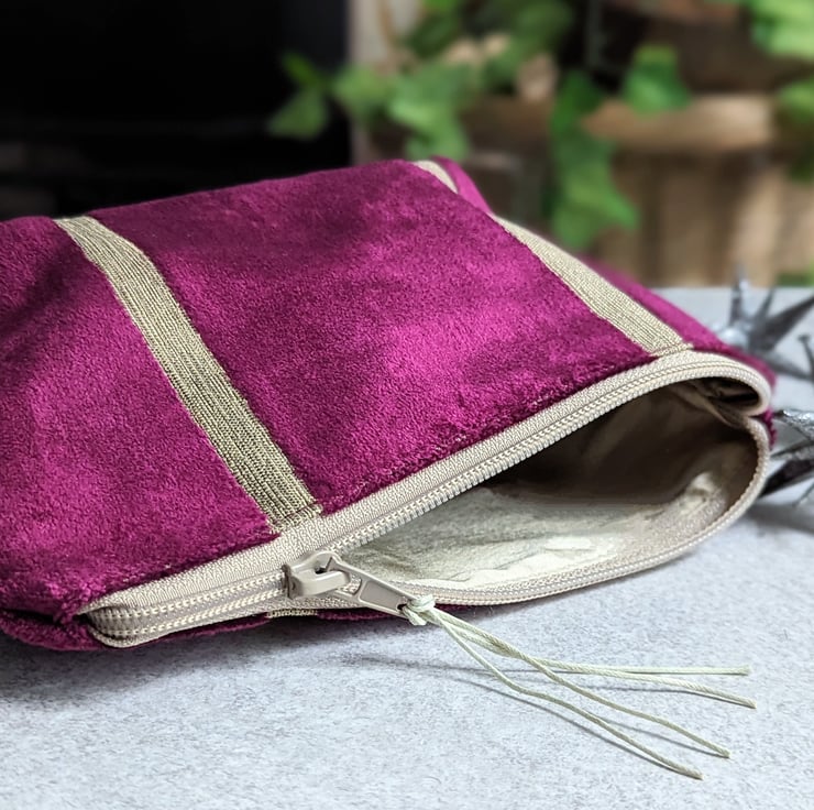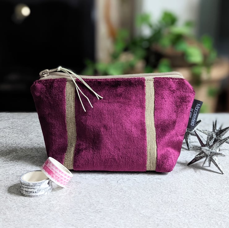 A little bit of luxury, this little pouch style make-up or cosmetics bag has been handmade using small remnants from larger projects.