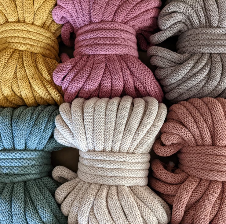 The DIY set is beginner-friendly, but everyone will love it! This best-selling, soft, and chunky Bobbiny 9mm recycled cotton cord will become a favorite. Great also for crocheting!