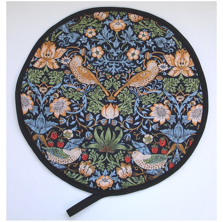 William Morris Strawberry Thief Aga Hob Lid Mat Pad Round Cover Blue