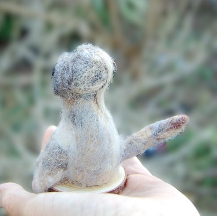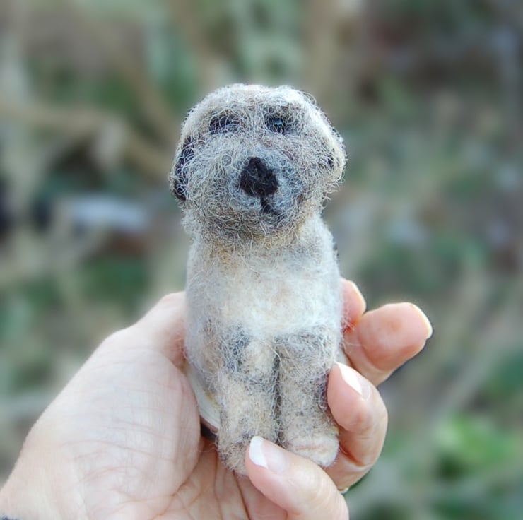 I have made this dog using wool fibers needle felted into shape and attached to a