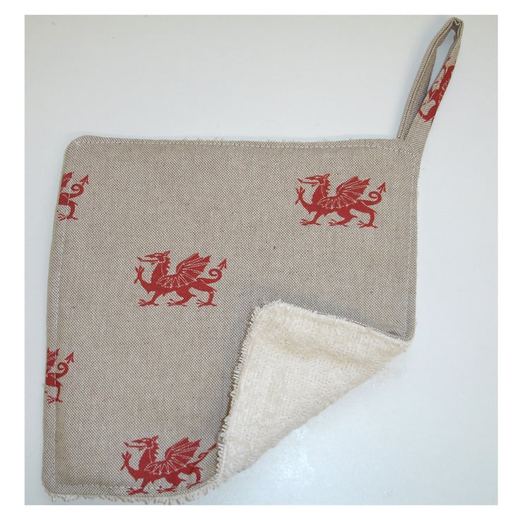 A Pot Holder backed with a cream towel fabric - useful for mopping up around the kitchen,