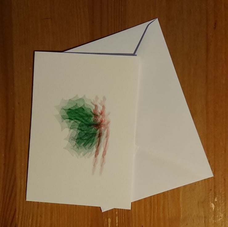 This handmade card is A6 folded size 190 GSM watercolour card prepared for print with a C6 white paper diamond flap envelope and is packaged in a clear compostable bag.