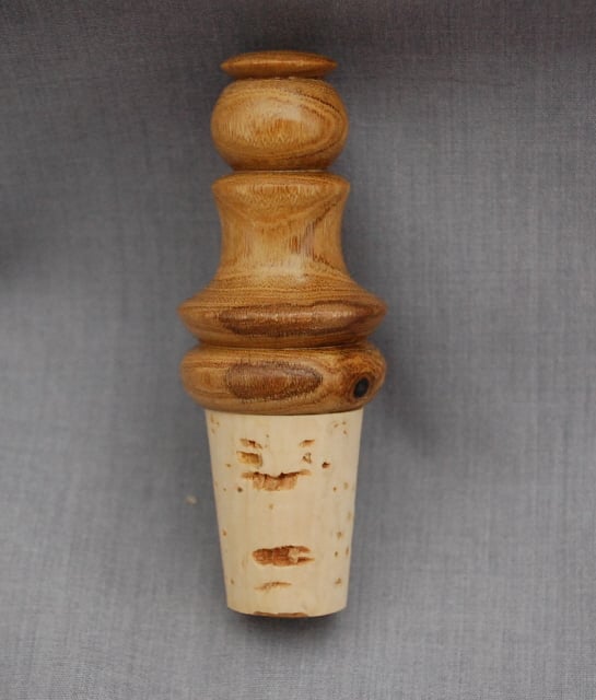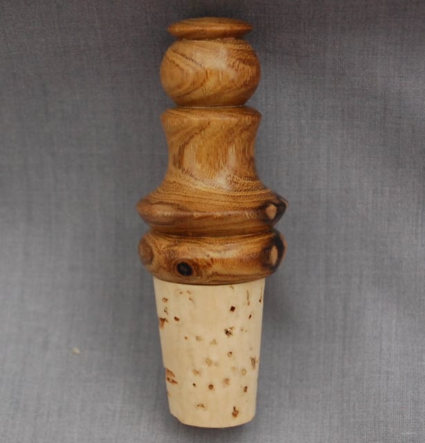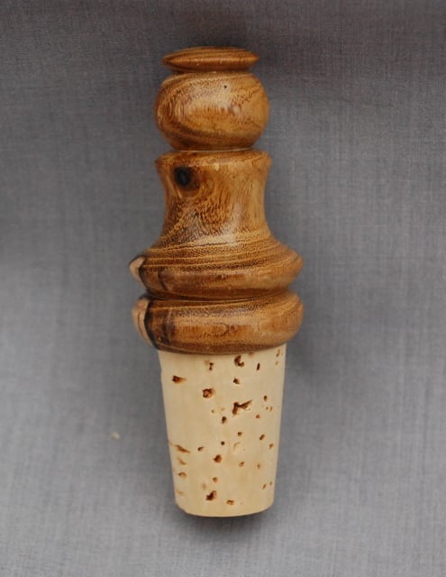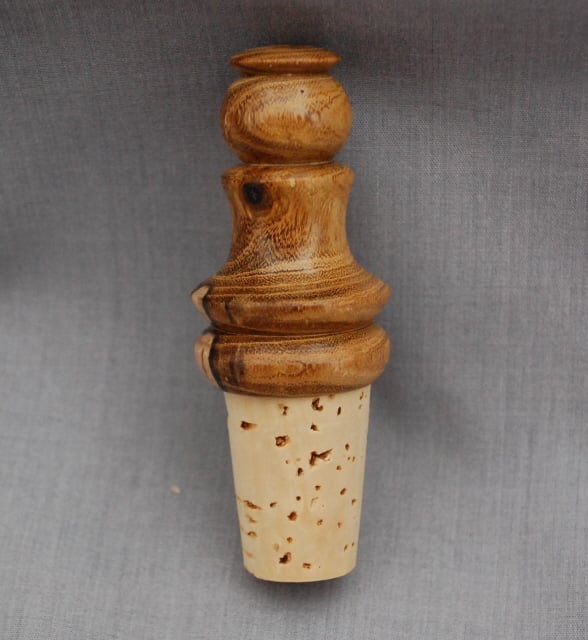 Here we offer a curvaceous bottle topper turned by Randal, he’s made the most of the assorted colours to be found inside this piece of laburnum. This hand-turned bottle stopper is ideal for using in spirit bottles, in the kitchen with herb-infused oils and vinegars, or any bottle you’d like to complete with a handsome stopper. This laburnum bottle topper is approximately 9 cm, high and 2.5 cm wide. Keeping to all natural materials, we have finished the lower part with cork.