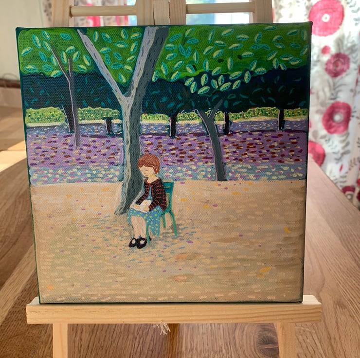 This little painting was inspired by a visit to Paris in The Garden Du Luxembourg. A lovely park with little metal chairs dotted around. I loved the neatness of the trees. Parks in are such an haven from the hustle and bustle of city life.