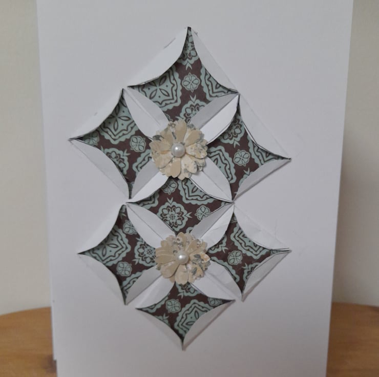 BLANK HANDMADE ORIGAMI PATTERNED CARD.