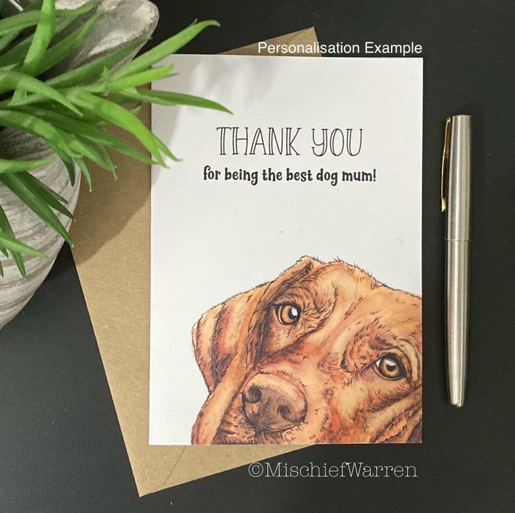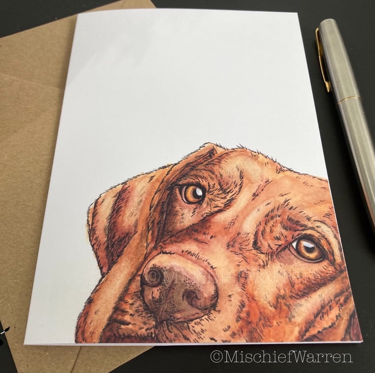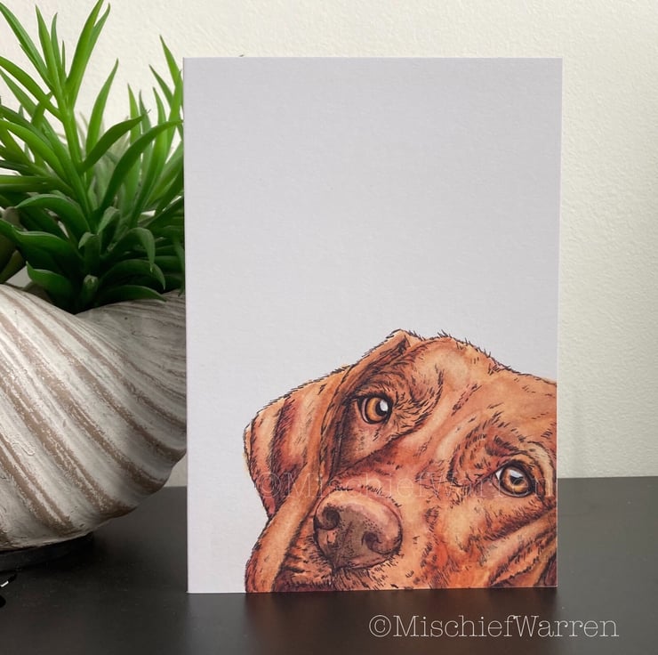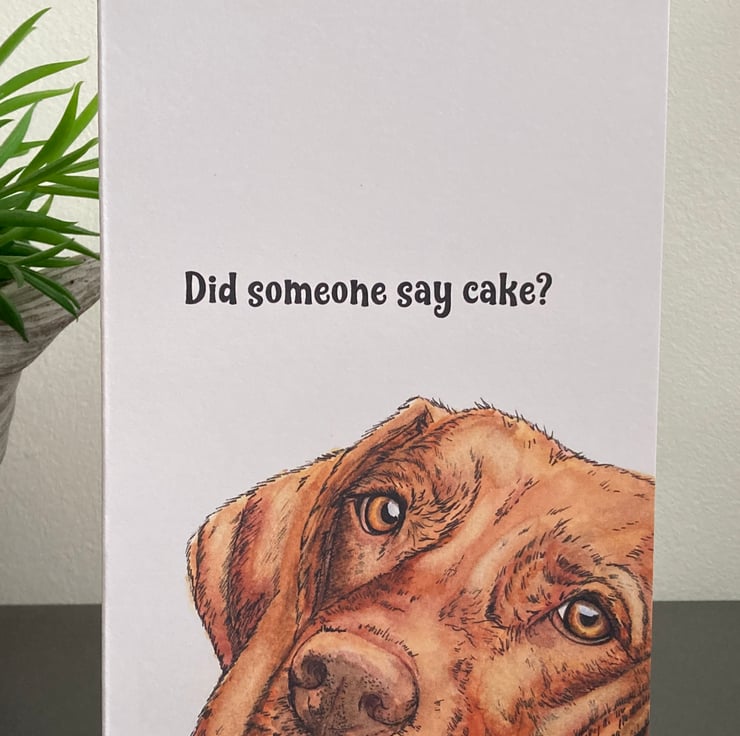 Vizsla birthday card or personalised for any occasion; birthday, Valentine’s day, Mothers Day, Fathers Day, Thank you, Wedding, Anniversary or Christmas perhaps). The Hungarian Vizsla dog card features a print of my original hand drawn and painted illustration. I particularly like the sentiment "Did someone say cake?" which covers any celebration involving cake.