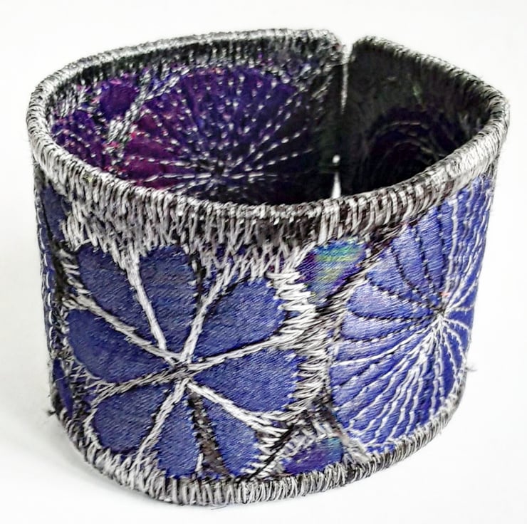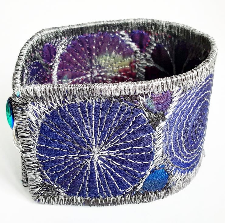 This is a handmade machine stitched fabric Stiched Silk Cuff or bracelet.