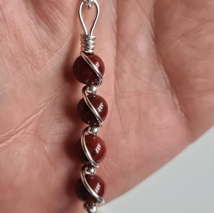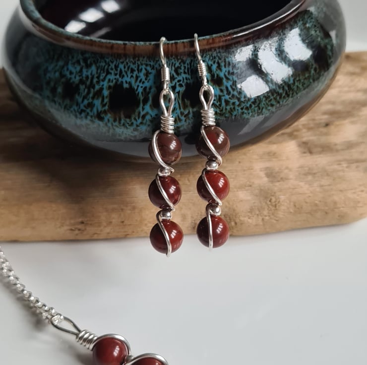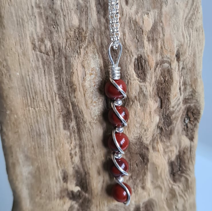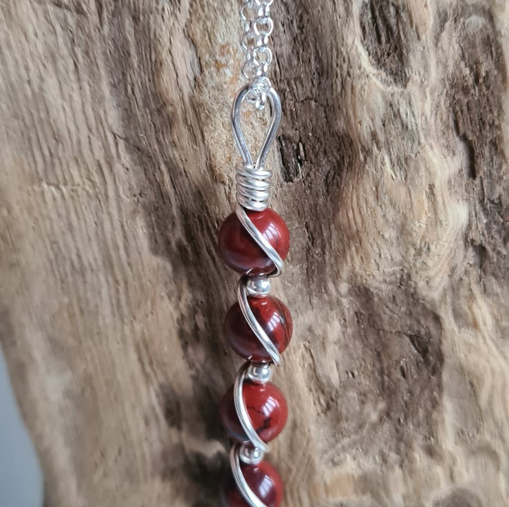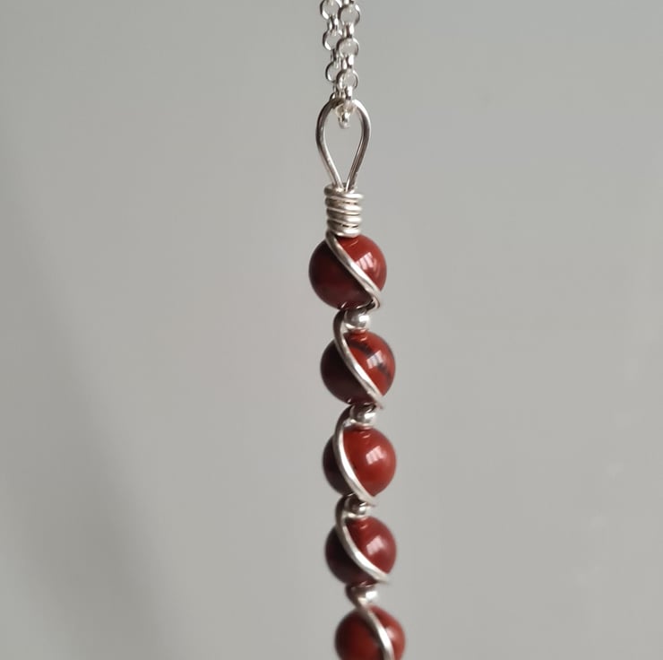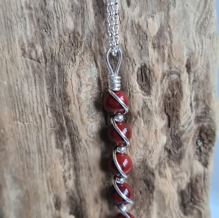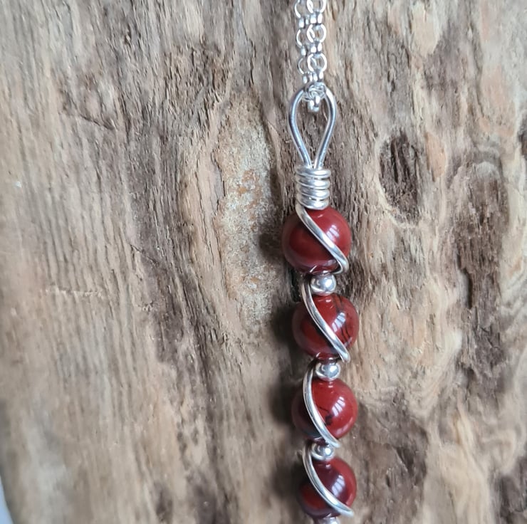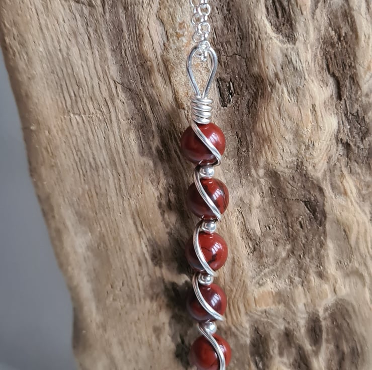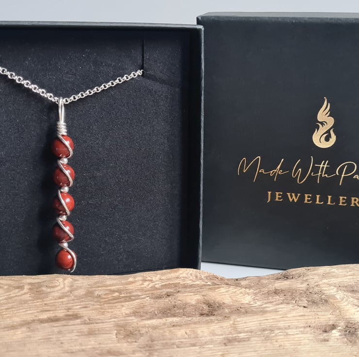 I have wrapped these lovely Natural Red Snakeskin Jasper & Silver beads in 925 Silver and the pendant comes on an 18" 925 Silver chain and gift boxed.