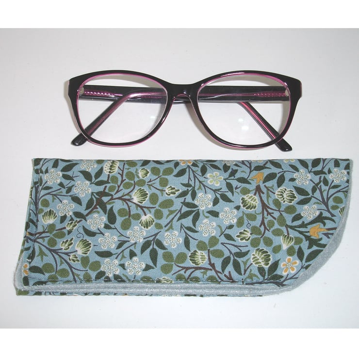 A soft sleeve for your Glasses / Spectacles. Fits a standard pair of glasses as pictured here, or slim over the counter magnifying / magnifier reading glasses - I can custom make one if you have larger glasses or sunglasses.