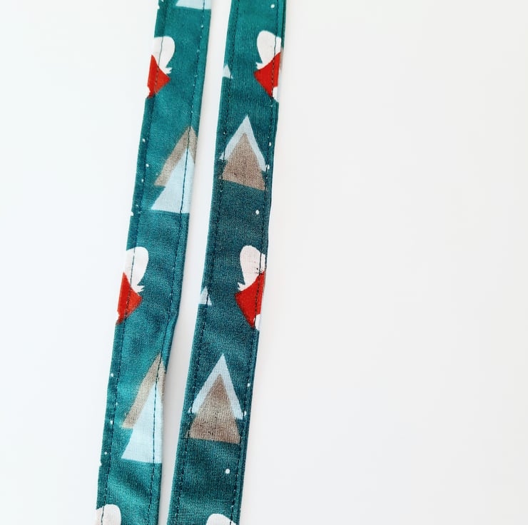 The cotton lanyard has a breakaway clasp for safety and is 47cm from the back of your neck to the top of the clasp.
