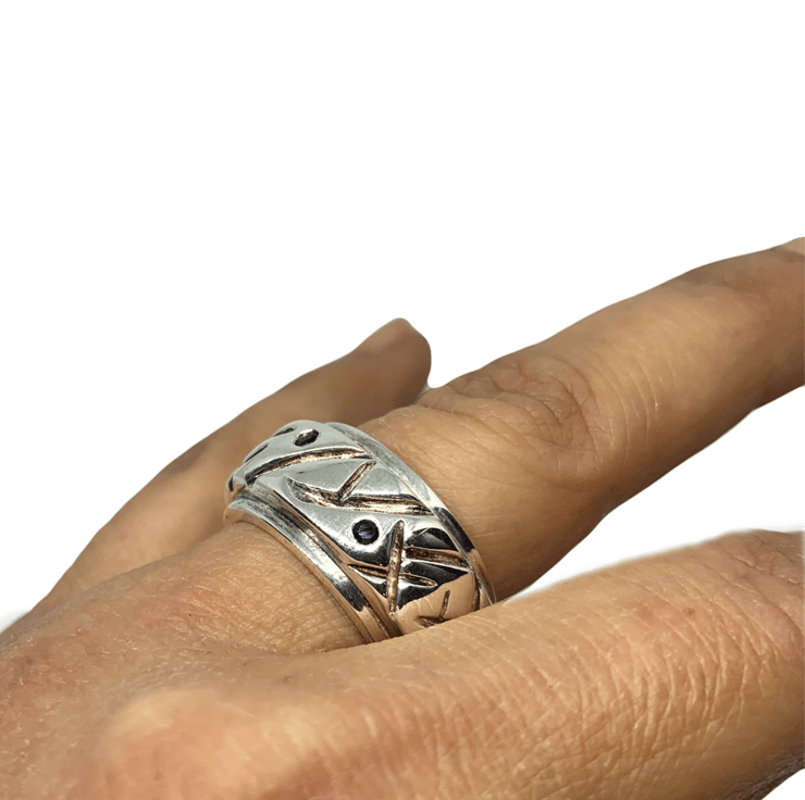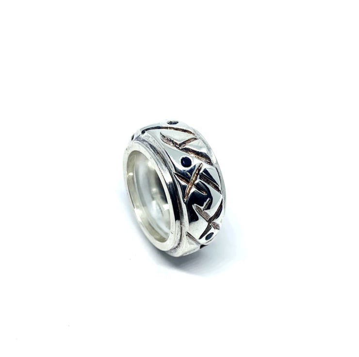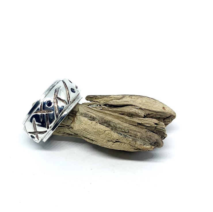 An abstract chunky sterling silver ring with a sapphire gemstone is a beautiful and unique piece of jewelry that adds a touch of elegance and sophistication to any outfit. The sterling silver band is thick and chunky, with an abstract design that adds a modern and edgy touch. The ring is finished with a stunning sapphire gemstone, which adds a touch of color and sparkle.