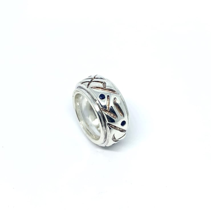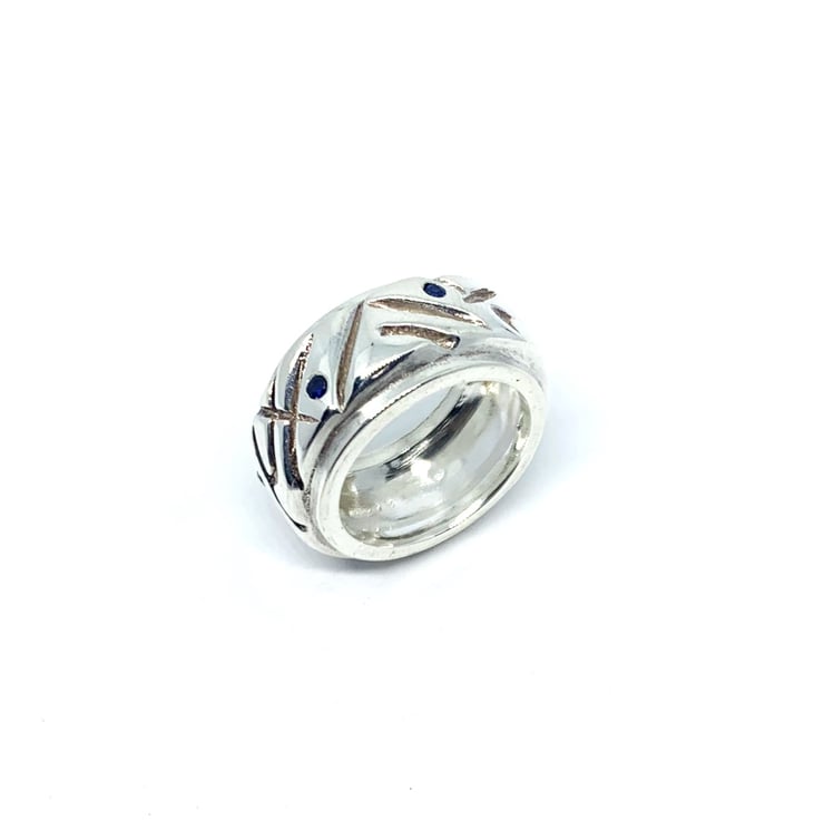 Whether you're looking to add some sparkle to your everyday look or want a statement piece for a special occasion, this abstract chunky sterling silver ring with a sapphire gemstone is the perfect choice. It's a versatile piece that can be dressed up or down and is sure to make a statement wherever you go.