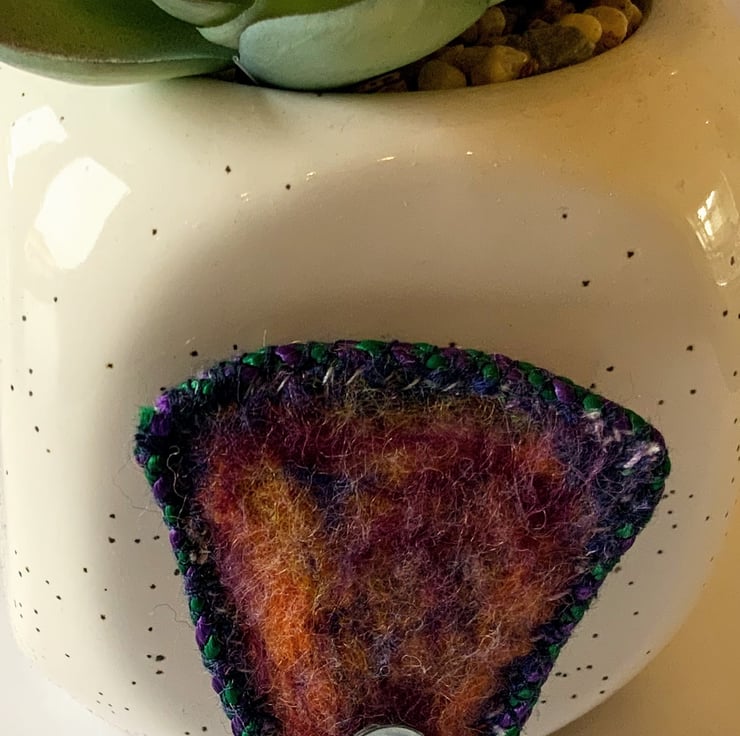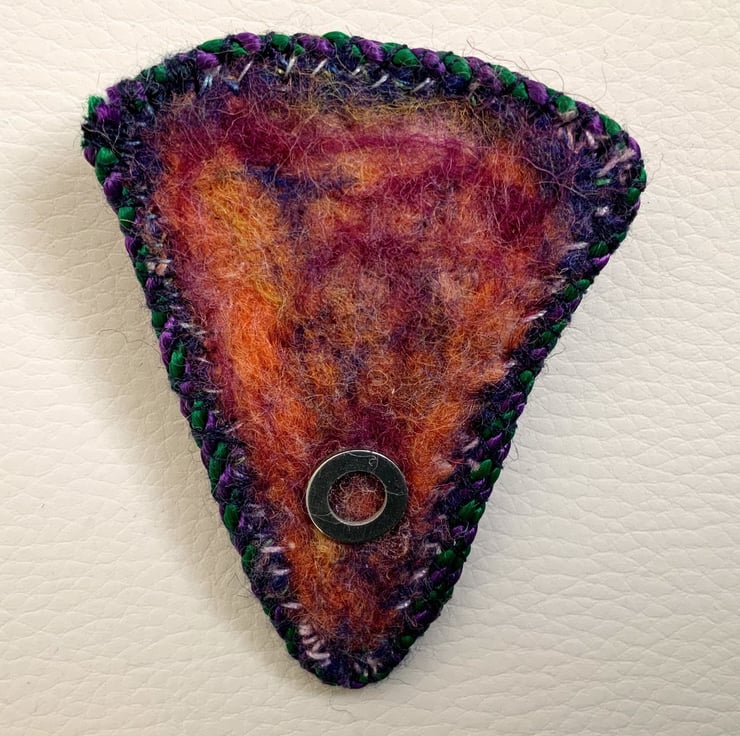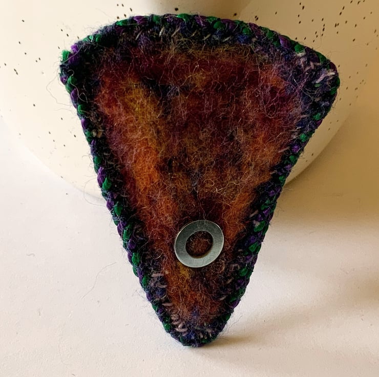 A mixture of vibrant autumnal colours using merino wool. A silver colour metal ring adds a minimalist touch.