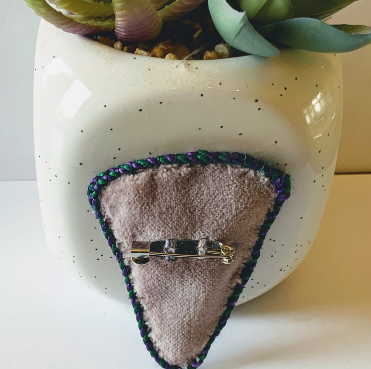 The back is velvet in dusty pink with a simple silver metal brooch pin.