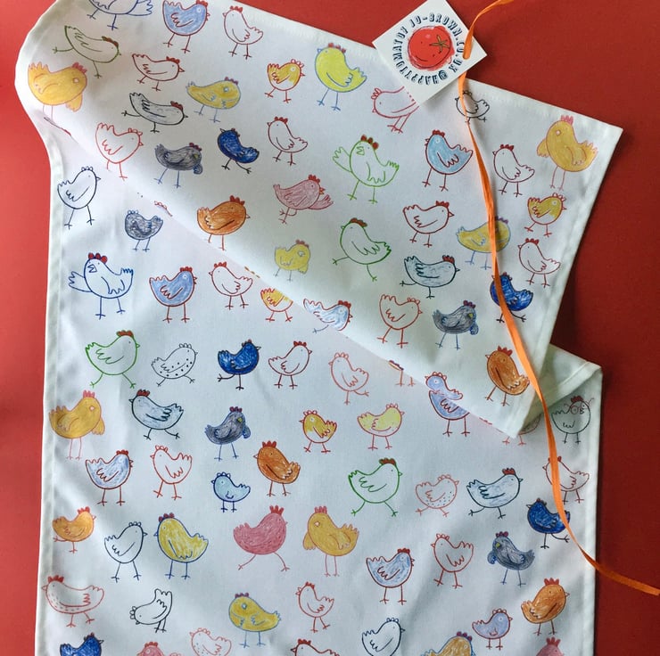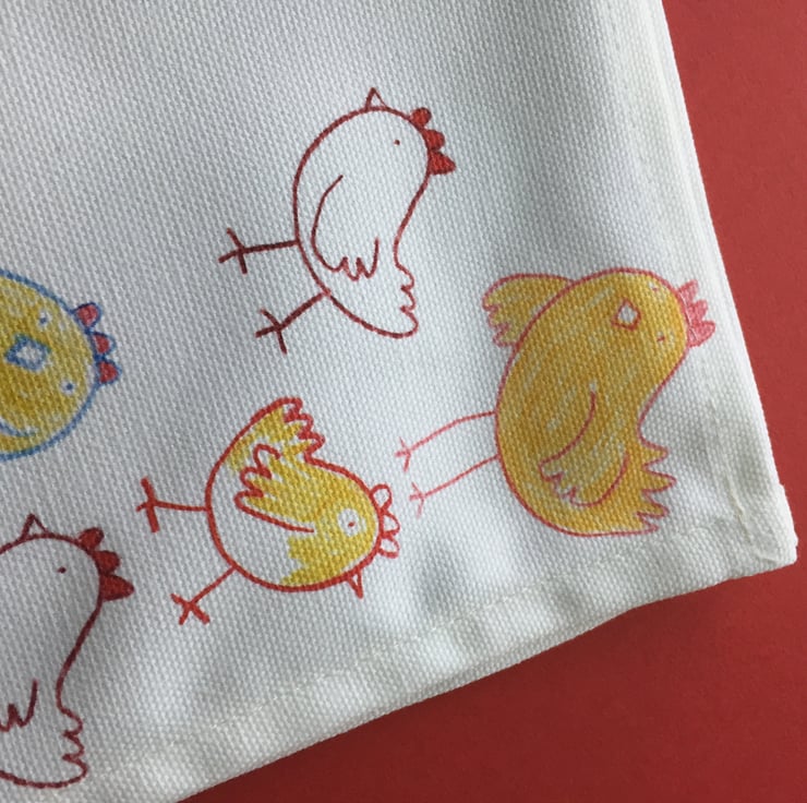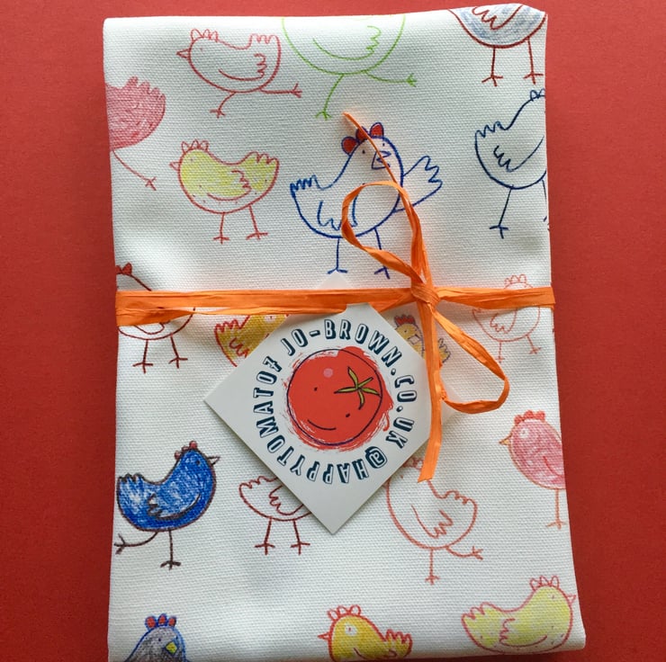 Happy Hens Tea towel - 309 gsm half Panama Cotton - half panama is the weave pattern, very densely woven and sturdy.