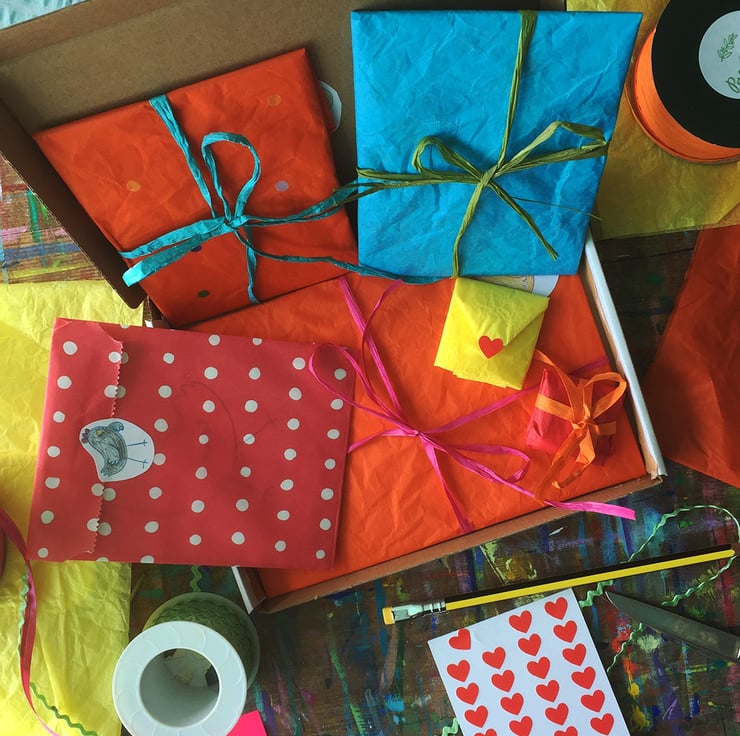 Each item will be gift wrapped in tissue and they will be sent in a letterbox sized cardboard box.