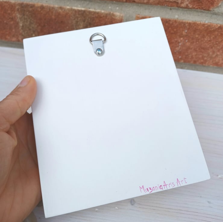 This piece of original art has been created on reclaimed/recycled wood, comes ready to hang with a D ring attached to the back. The art work has been sealed with satin artist sealer to help protect the painting.