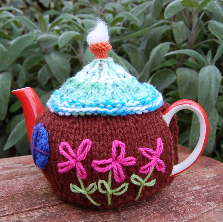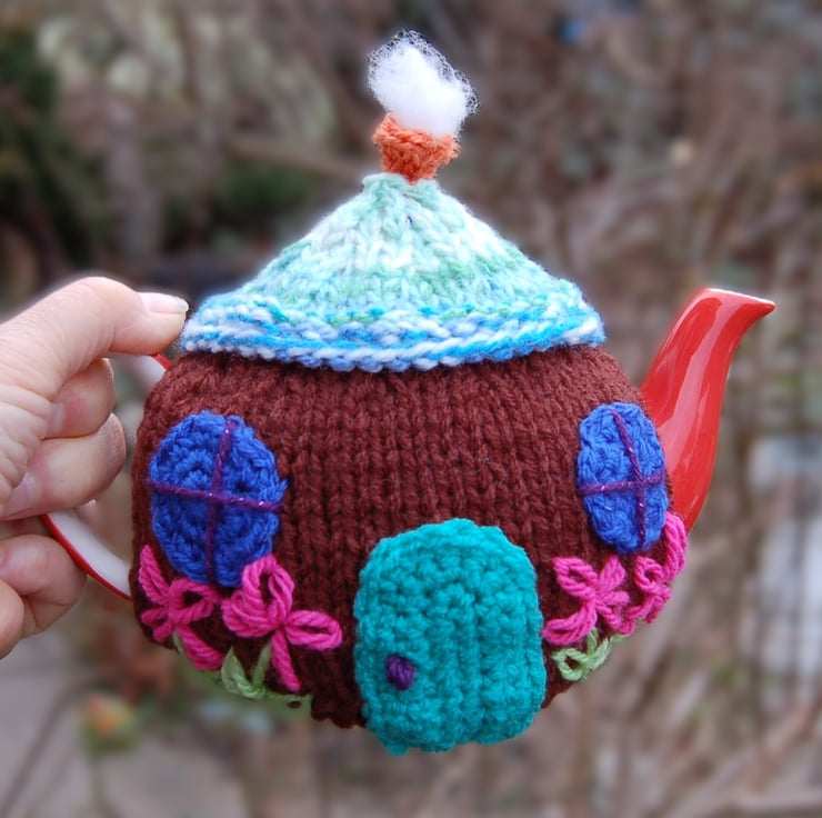 I've been knitting and crocheting tea cosies for many years. This is one of my favourites, there are so many ways to decorate a country cottage.