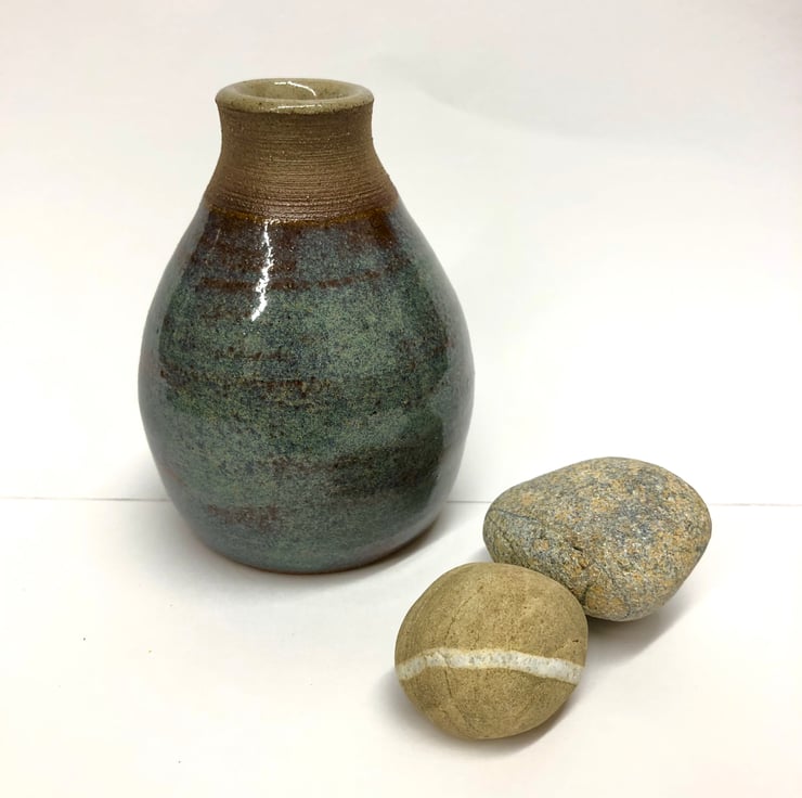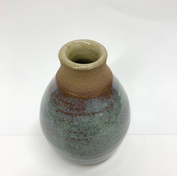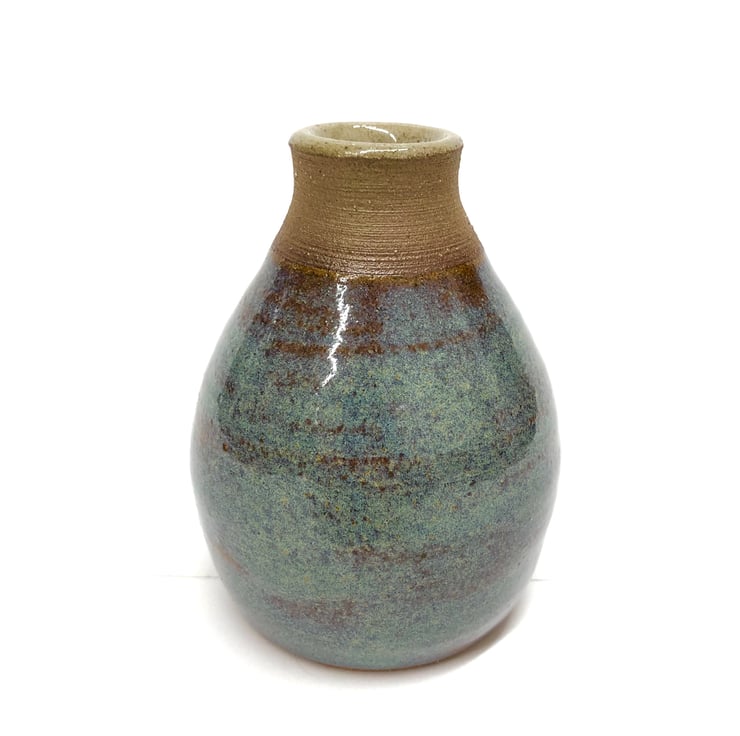 This little bud vase has been thrown in buff clay and glazed with a turquoise and brown shiny stoneware glaze. It's just 9.5cm tall and 6cm across the base and would make a lovely little gift for a whole variety of occasions. I just love this pot's chubby belly!
