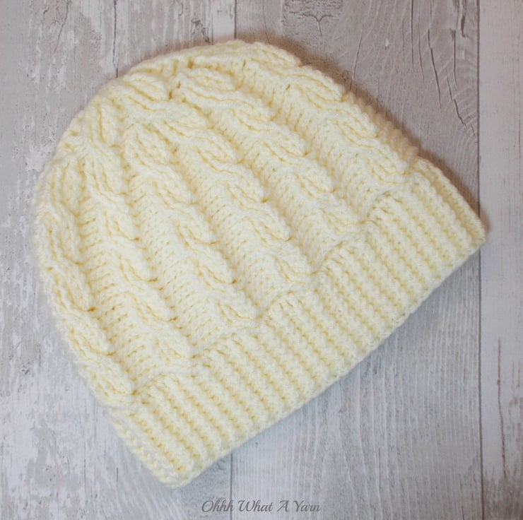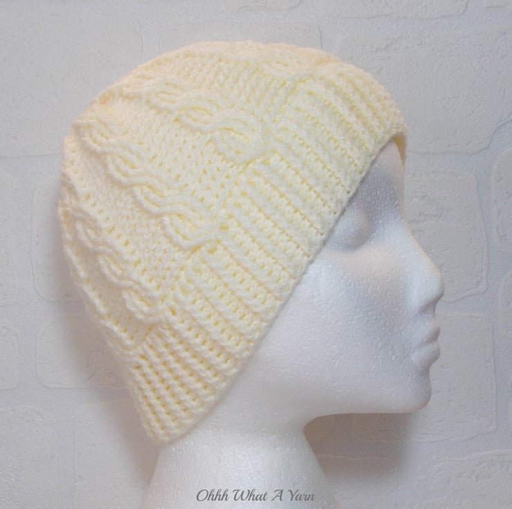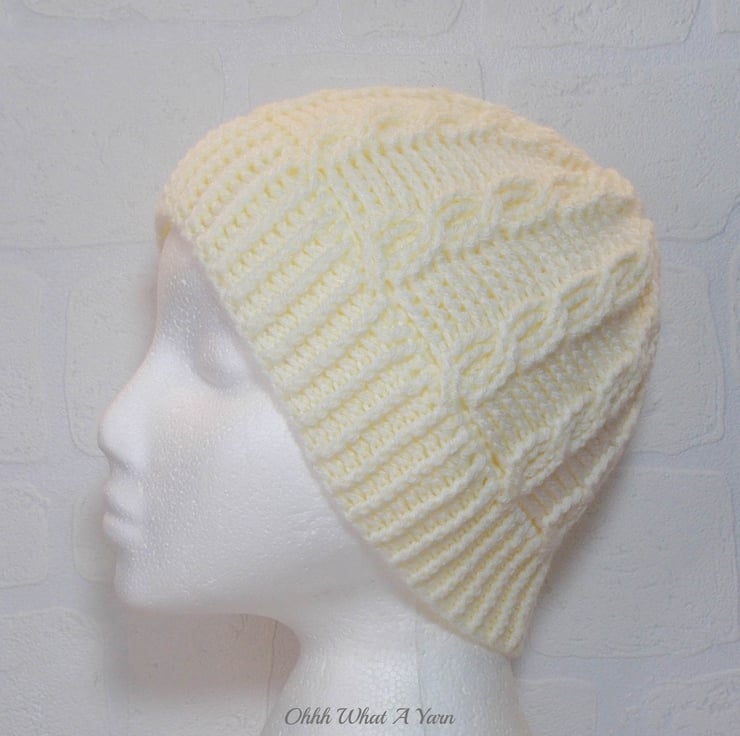 This cosy hat is crocheted using gorgeous premium 100% acrylic yarn in a gorgeous cream colour.