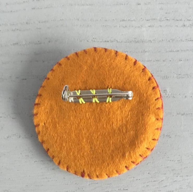 This Hand Embroidered Sun Ray Brooch is a nice wearable size, 2 inches or 5 cms in diameter. A metal brooch pin with a safety catch is sewn on the back, for secure wear.