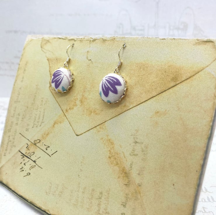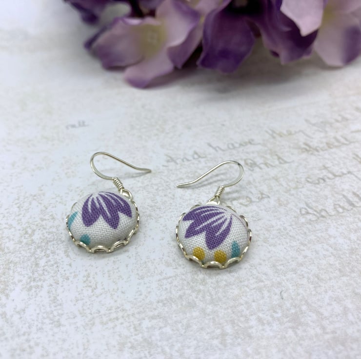 Keep spring flowers always in your heart and wear them as well, with these lilac flower fabric button dangle earrings!