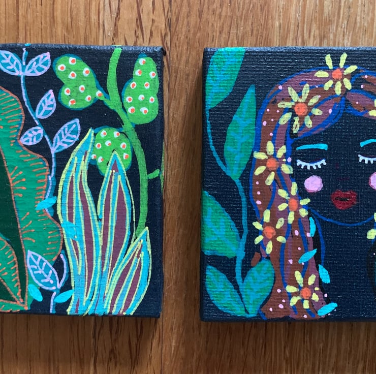 I painted these mini artworks to compliment each other the duo works either way with the face to the left or right.