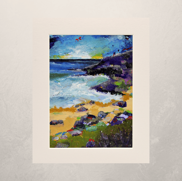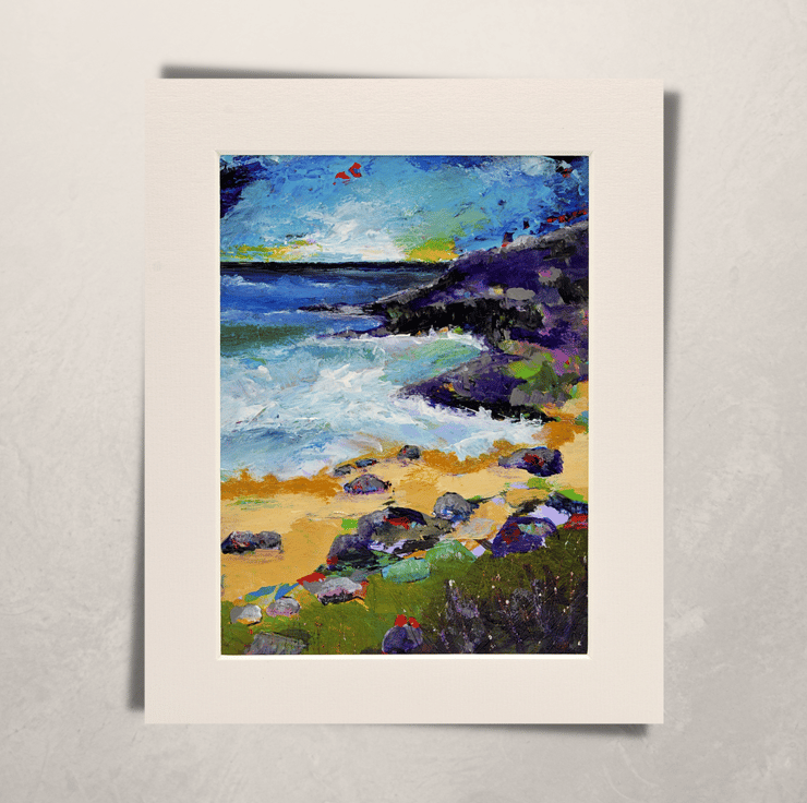 This is an original, one-off, acrylic painting on reinforced card. It is varnished and presented on high quality mountboard. It is unframed. The size of the art work is 10 inches X 8 including the mount. My initials are on the front and the work is signed and dated at the back. It comes in a cello sleeve for additional protection.