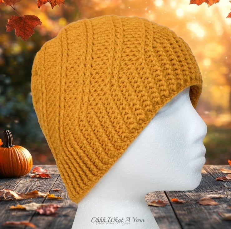 This cosy hat has been crocheted using gorgeous 100% acrylic yarn in a lovely gold, mustard colour. It is one size and due to the stretchy nature of crochet should fit most ladies’ heads.