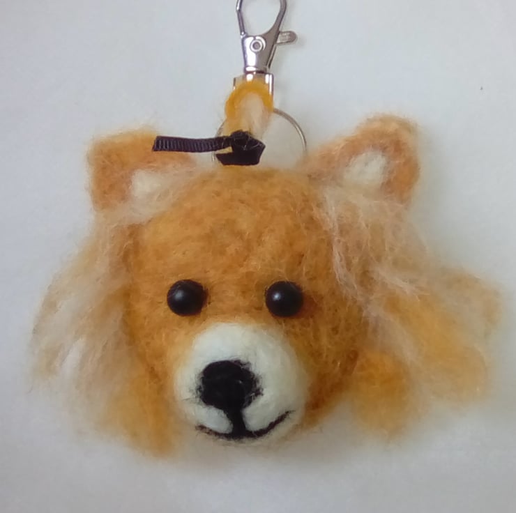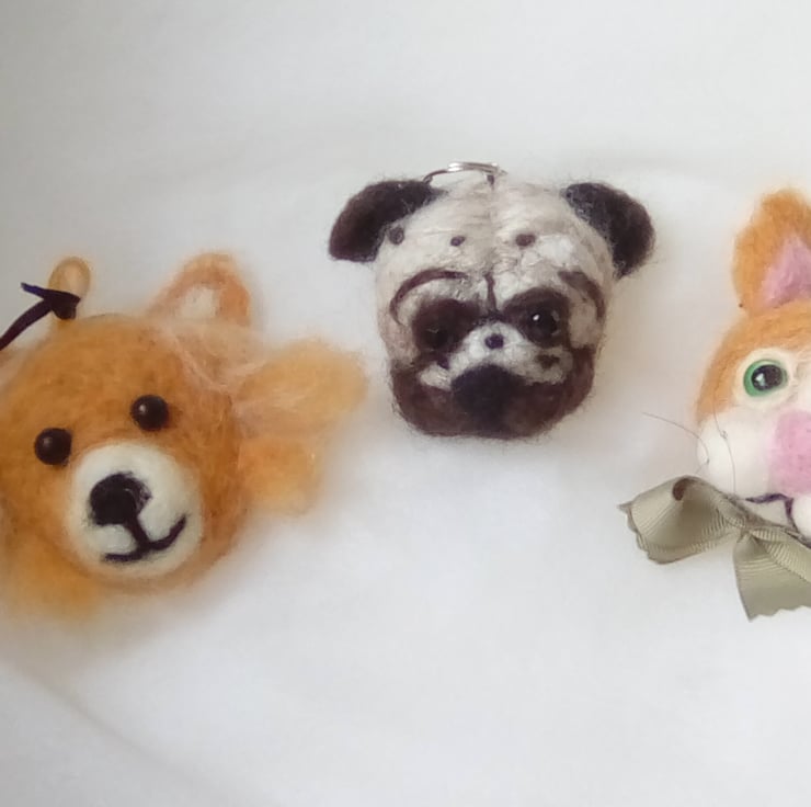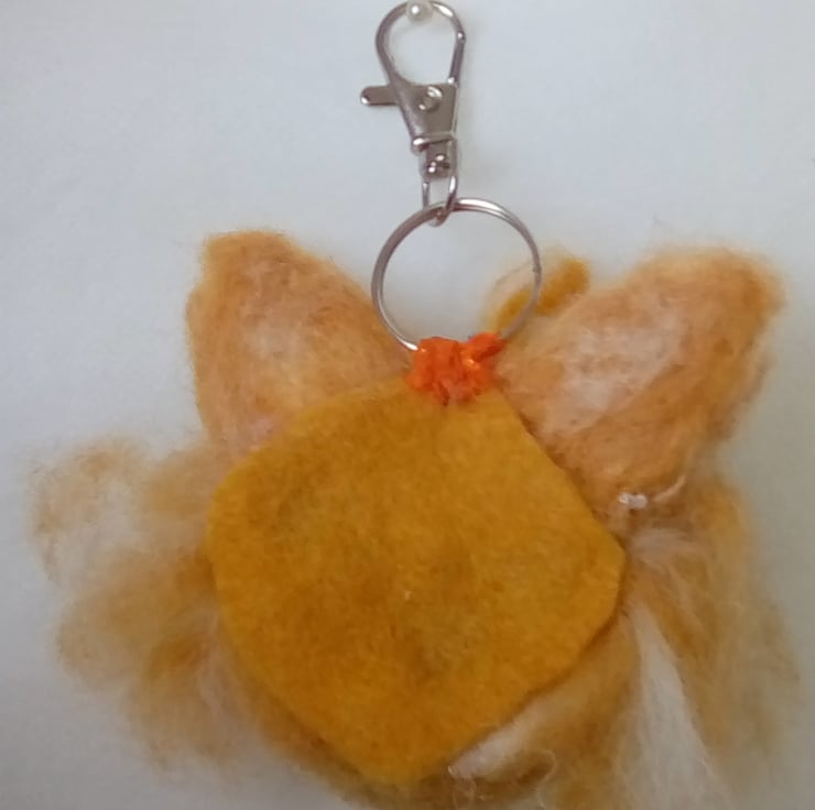 I have needle felted this Chihuahua keyring using Merino wool. It has beaded eyes and felt backing. Hangs from a metal keyring. Measures approximately 7 cms by 9 cms. Would look great hanging from your bag or holding your keys.
