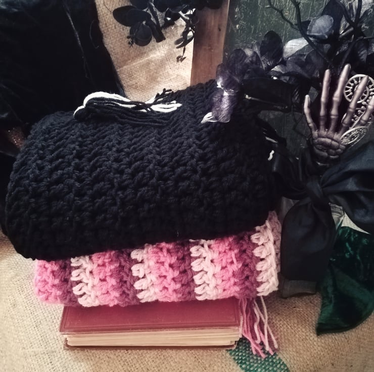In this set you get the two snoods inspired by the Netflix show Wednesday that Wednesday and Enid wear.