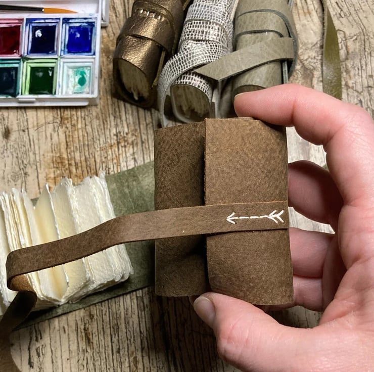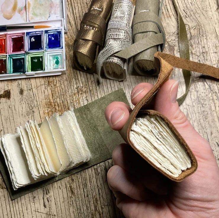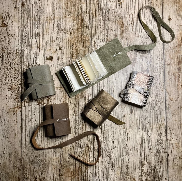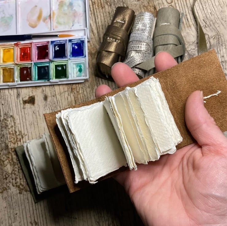 These adorable A9 sketchbooks contain pages that measure just 1.5"x2" (approx!). They make wonderful gifts for artists and dreamers, perfect for miniature art! They will fit in even the smallest of spaces. I have sourced some stunning cotton rag paper for these journals - cotton rag paper is handmade using cotton tshirt waste and retains the natural deckle from the moulds on all sides of each page, the paper is acid-free with a medium surface texture and is perfect for all drawing and painting media. Handbound in my West Sussex studio, the rustic feel of cotton rag paper pairs wonderfully with their soft leather wrap covers.