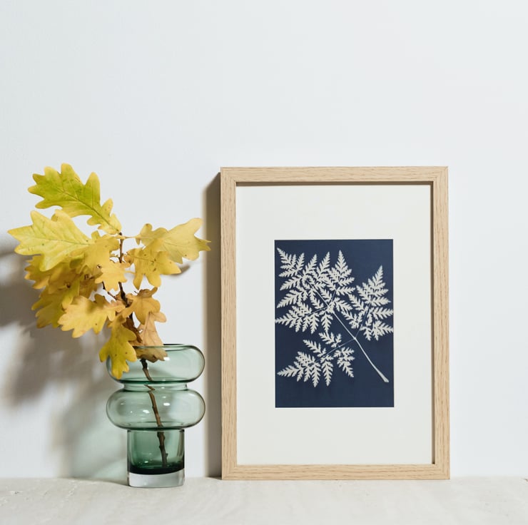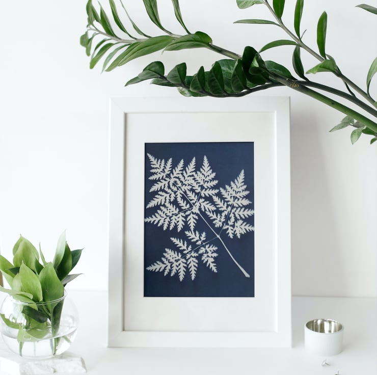 Perfect leaves to use for Traditional Cyanotype, making a dramatic statement in Prussian Blue and White- it would look great in any colour frame and is perfect for a Blue and White kitchen, dining, family room, or home office- what colour is yours?