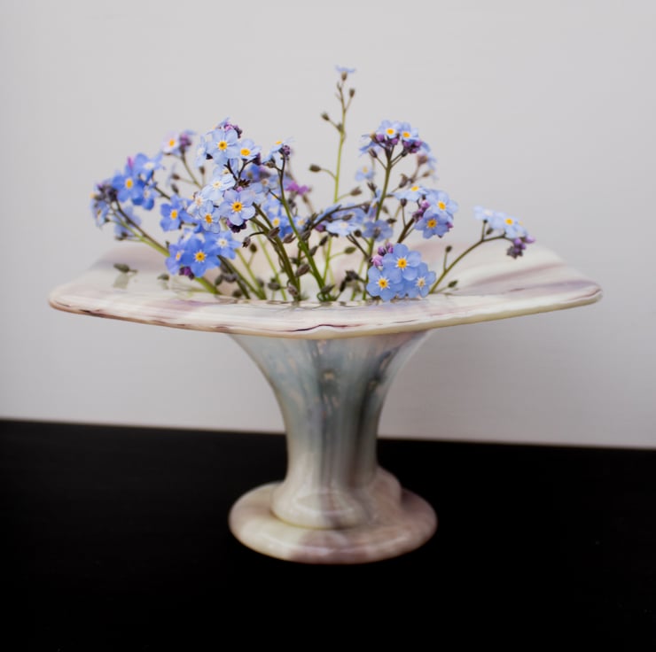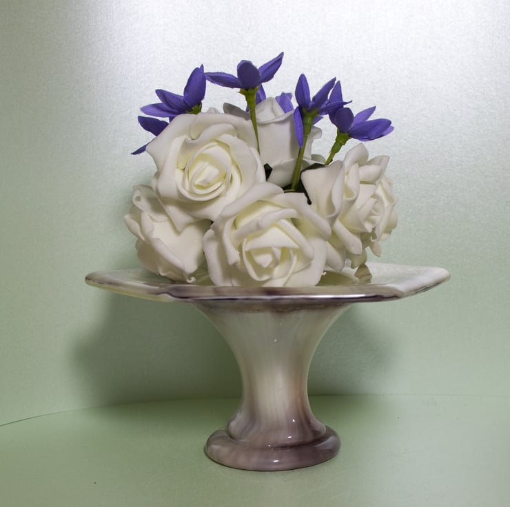 This vase uses subtle coloured glass in streaky browns & cream colours. It will fit in with any decor.