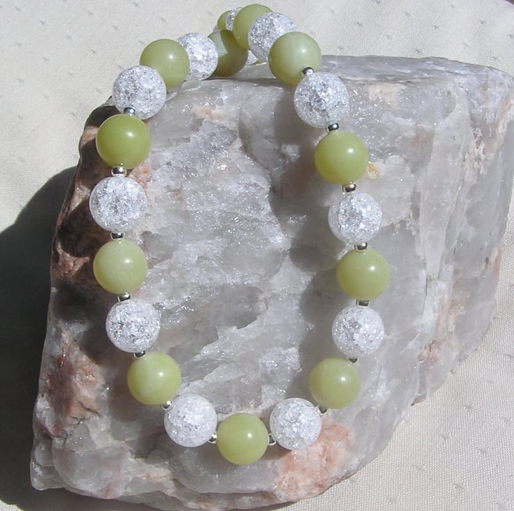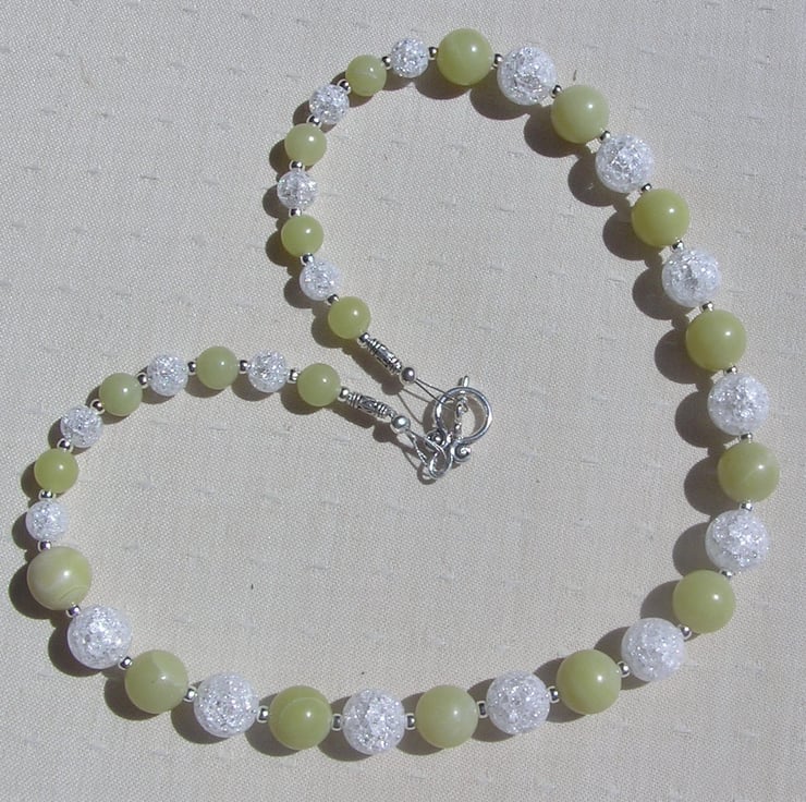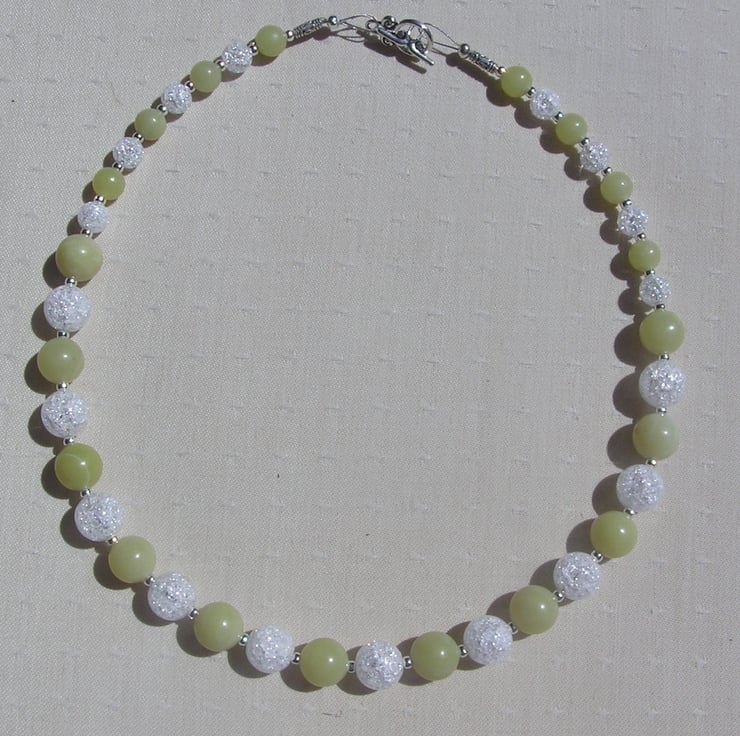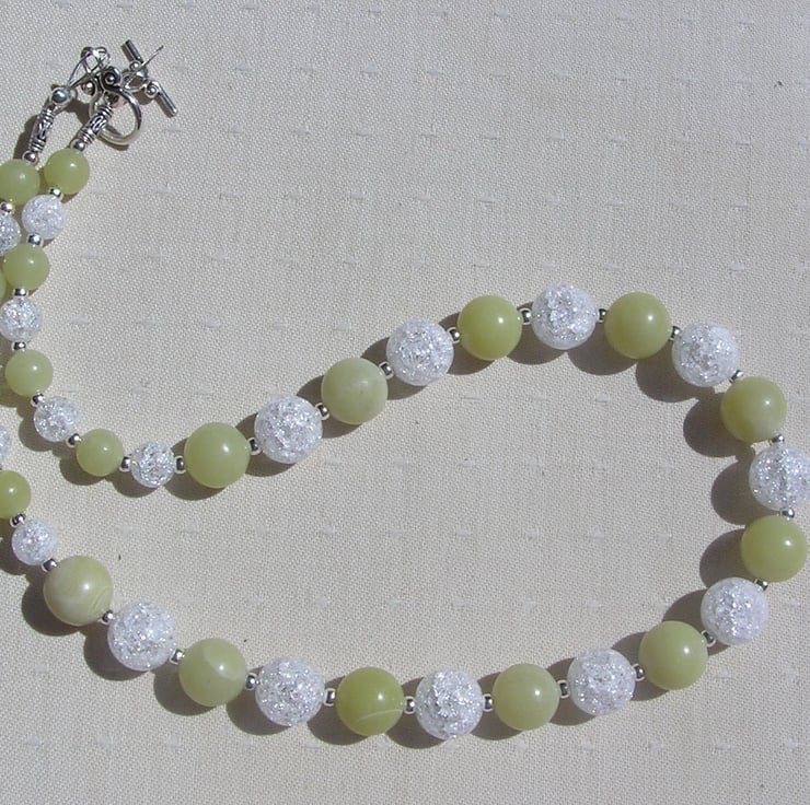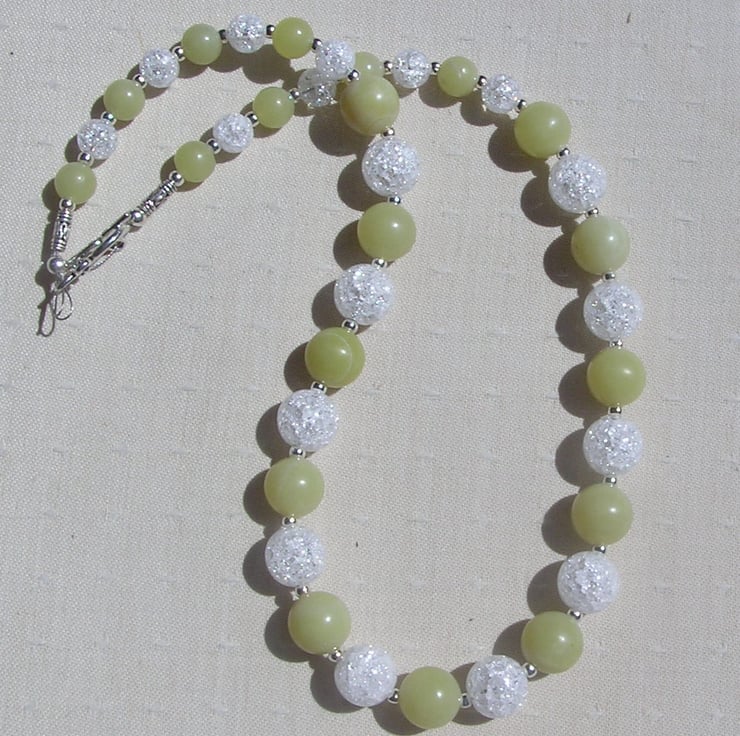 This Stunning Sumptuous Necklace is made from alternating Lemon Jade and Crackled Clear Quartz chunky round beads and for that added extra sparkle tiny Silver spacer beads - a Gorgeous Cool combination that will look stunning either worn casually or with something more Elegant for a Special Evening out